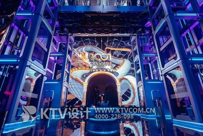 前厅高度18m,这在目前为止的娱乐场所中是极少有达到如此规模的设计。采用超挑高空间搭配未来科技风格,构筑宛若未来世界的豪华叠空旷境。180°环形屏幕拒绝视觉疲劳,墙体与天花板大胆使用好莱坞电影中常用的CG特效,仿佛置身于科幻电影现场,炫酷潮流而不失奢华格调。设计方在这里特别做了一个“凯旋门”设计。还为这个巨型门头量身定制了超清4K素材:蓝色通道频闪、白金神龙摆尾、宇宙未来科技,随时展现百变多面;融入时下流行的“元宇宙”元素,结合年轻人的前卫审美,也在无形中彰显着品牌的不俗品味,带来了更吸睛的震撼效果和更独特的新颖风格。
