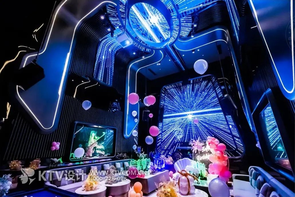 包厢内以LED大屏和灯光矩阵铺设墙面和天花板,打造出“星际战舰”般的科技空间,迷幻而迸发出大片般的兴奋感。采用T.DTAICHEE高端娱乐音响系统,加上LED光影设备配合;实现LED屏与智能灯光音响的一体化控制,让客人享受极致的沉浸式感官体验。灯光矩阵由奥运会首席灯光师亲自调试,通过极具科幻视觉元素的意念融入和独具匠心的舞美设计,打造出一个个充满未知感的未来玩乐空间。T.D的工程师以顶尖技术打造沉浸式声场,现场喊话厂牌RAPPER与DJ MC产生近距离声音碰撞,传递真正的Hi-Fi高质量娱乐体验。