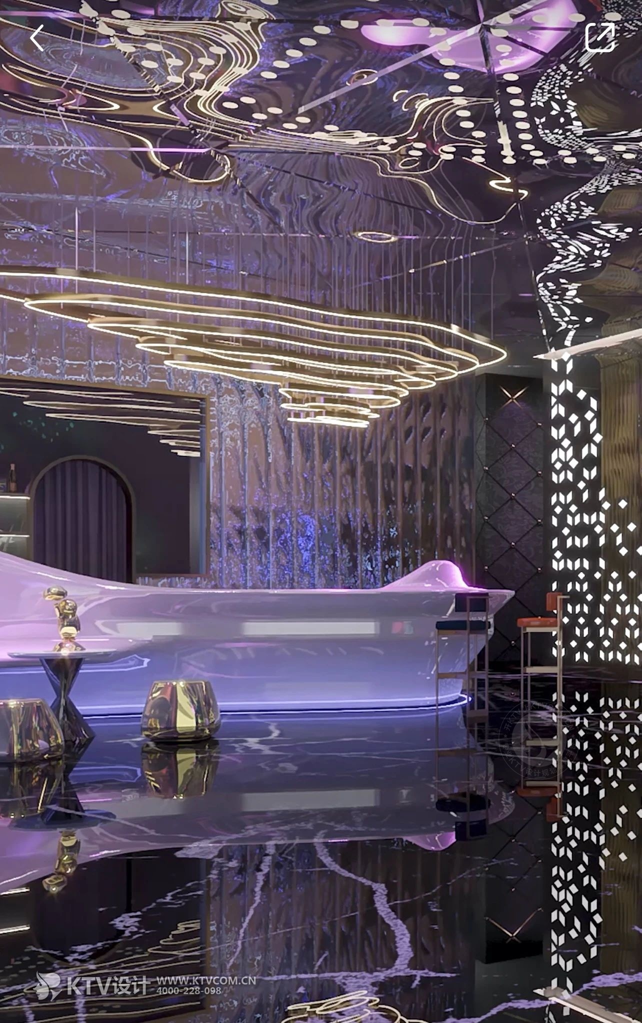 在选择灯光时,除了要考虑美观好看,也要选择持久耐用的高质量灯具。KTV通常要保持长时间的连续营业,包房有时更要营业十多个小时,KTV灯具需要长时间处于工作状态,这就对灯具的使用性能提出了很高的要求。除了选择优质的灯具外,还需要对灯具进行检查,避免营业期间出现问题。前台是KTV的门面,一个有辨识度的前台绝对是让人过目不忘的重要元素,顾客到店第一眼看到的就是前台,因此前台的造型就显得尤为重要了。