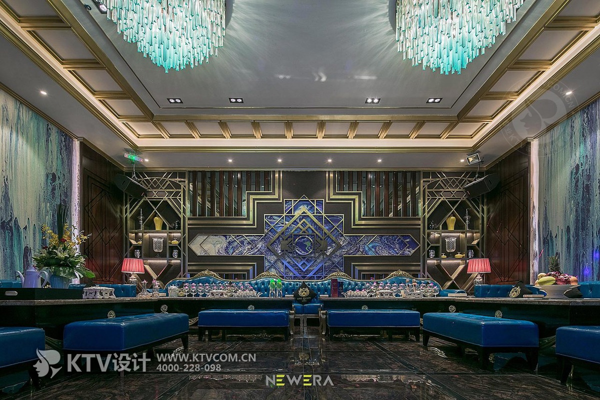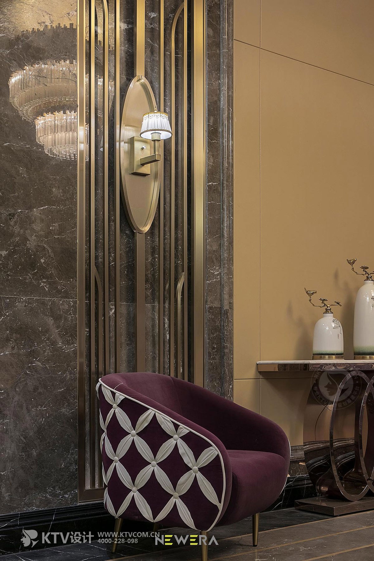“入则奢华万象,出则低调静谧”是设计师所追求的空间意向表达,故KTV设计师灵感上来源于“The Great Gatsby”场景中的奢华、低调大量的金色装饰及其线条体现空间的奢华,木饰面等设计融合了中式设计的理念,是中式的低调、奢华、尊贵、典雅、时尚、艺术、文化延伸,通过不同空间功能的思想性,造就了8种系列款式,既奢华优雅,又商务休闲之用的高端群体的私享领地。