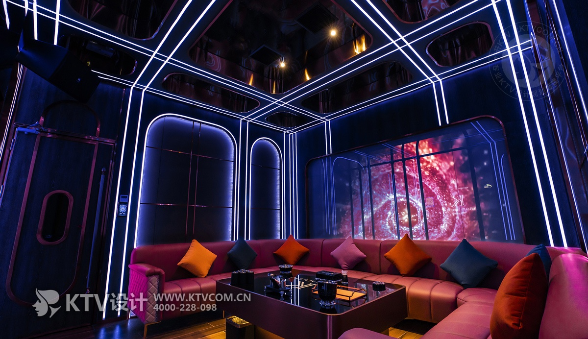 纯色大色块对情绪感知有高度的影响,在ktv中应用,可谓极为大胆。